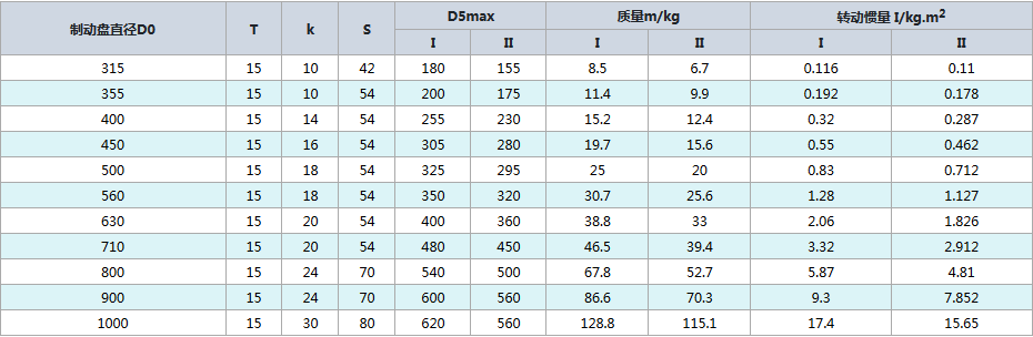 制動(dòng)盤的主要尺寸、質(zhì)量和轉(zhuǎn)動(dòng)慣量/mm
